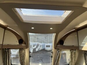 The two-berth model in the Unicorn range received a complete redesign for 2018, with an L-shaped kitchen at the rear and a shower room longitudinally aligned, on the offside. This model won Caravan‘s 2018 award for Best Luxury two-berth Caravan.