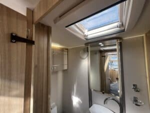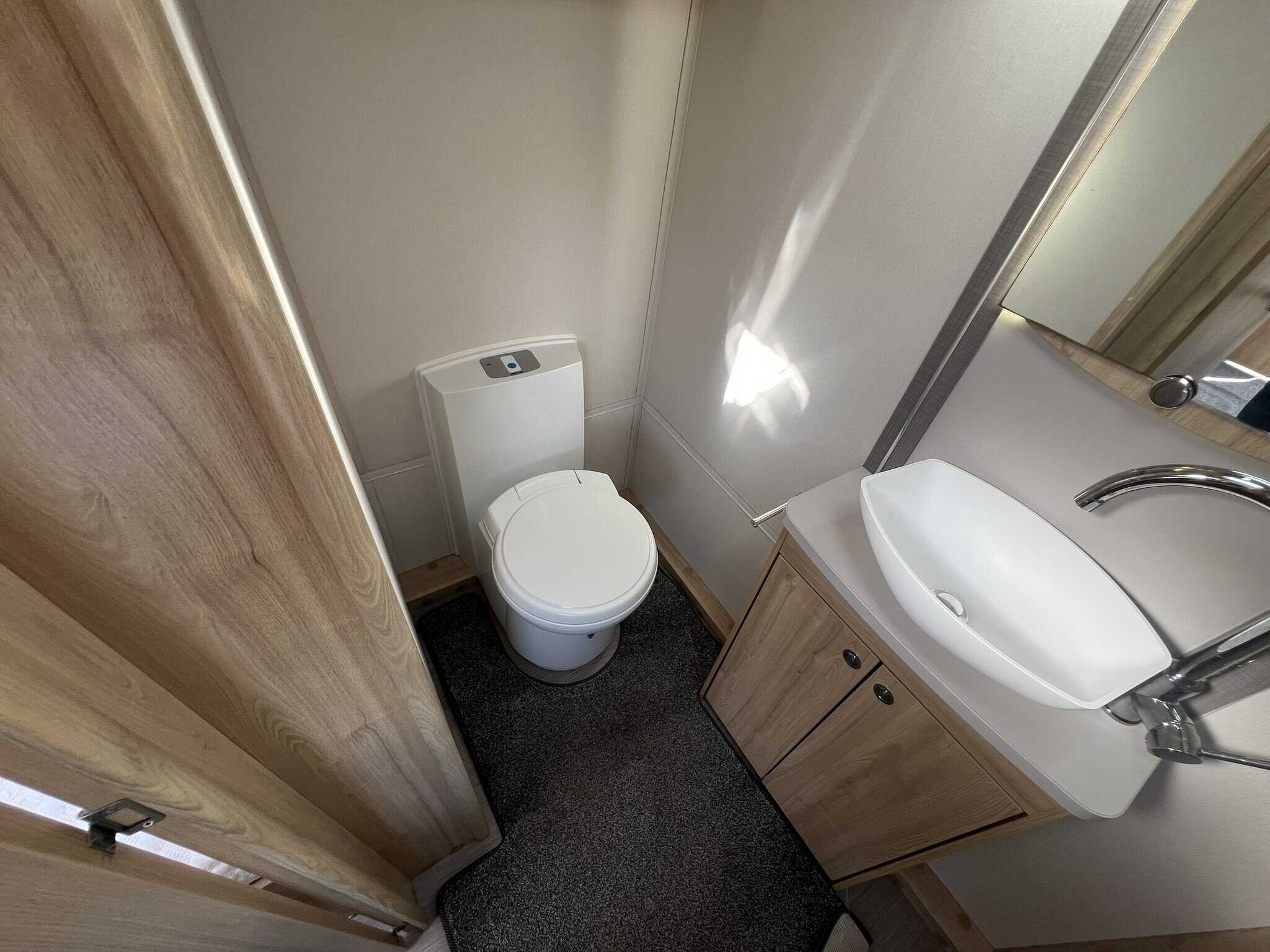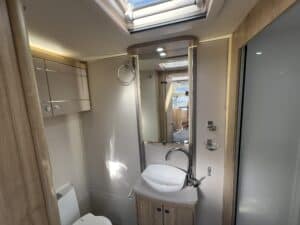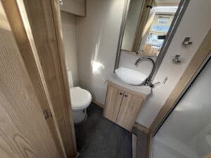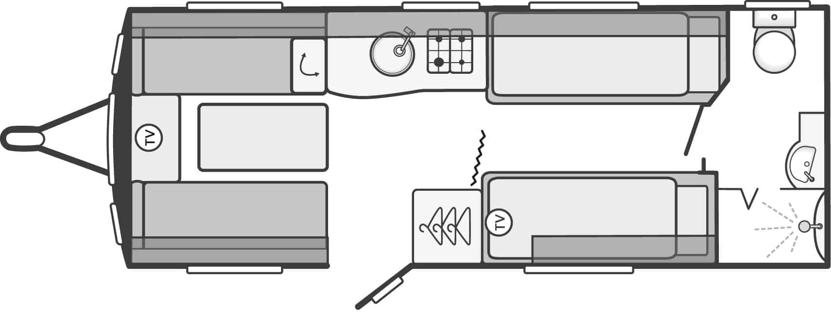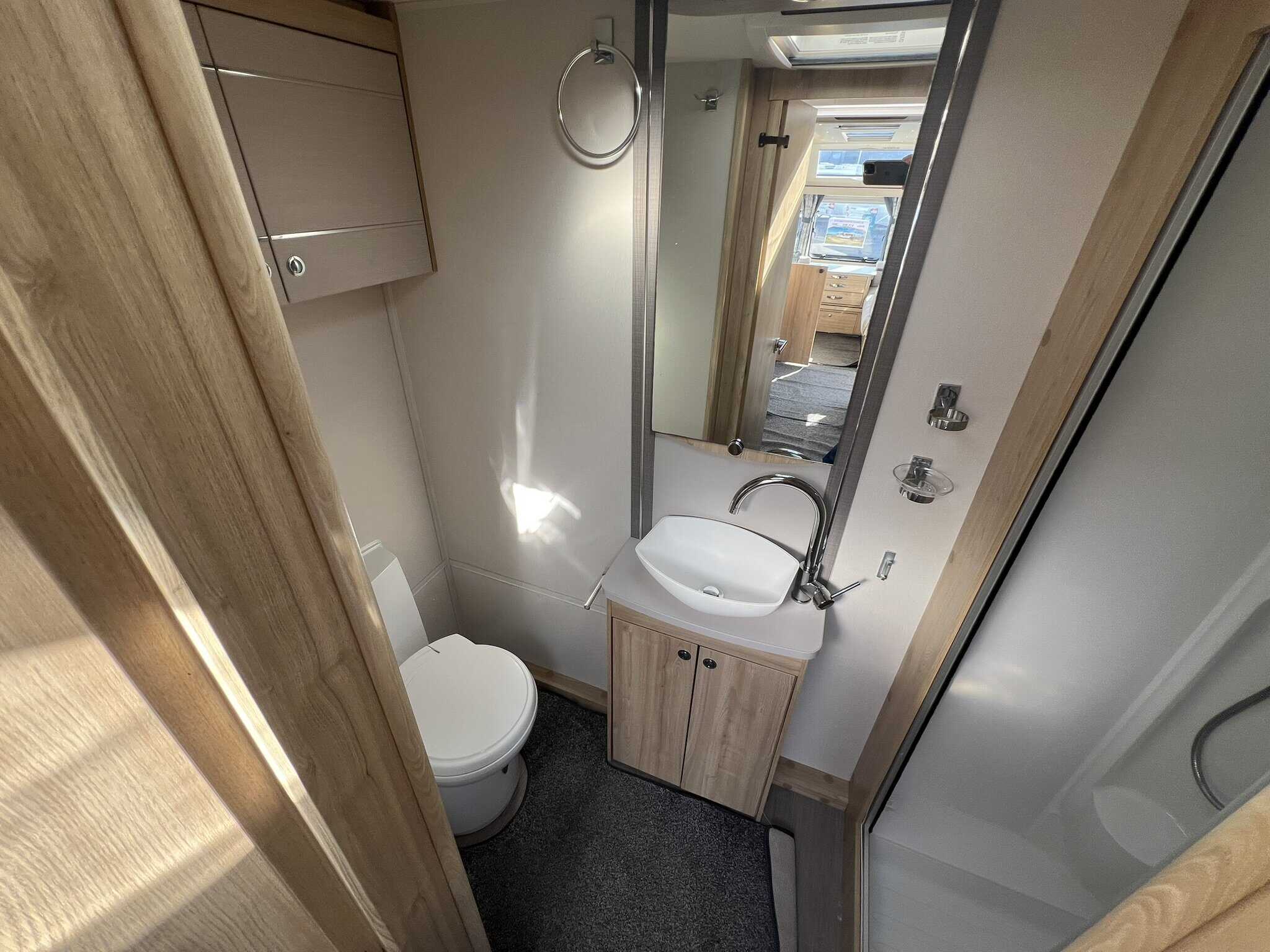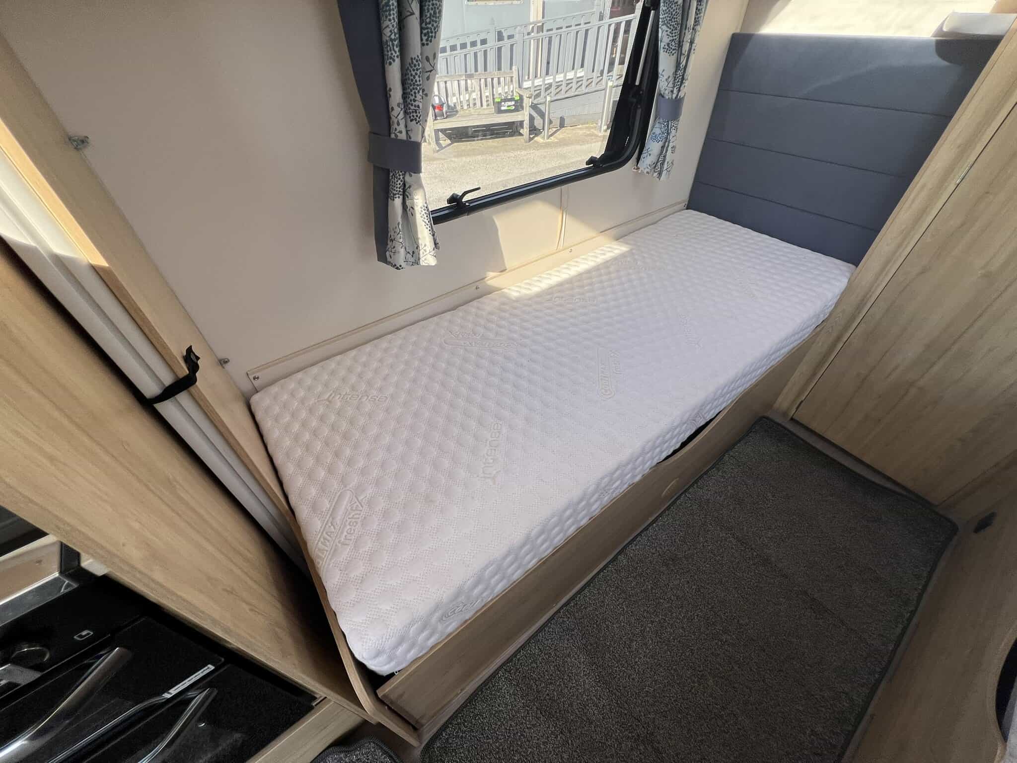 A strength of this type of twin-bed layout is that it allows you to have a full-width shower room, which you can get to easily via a clear aisle down the centre of the caravan between the beds.