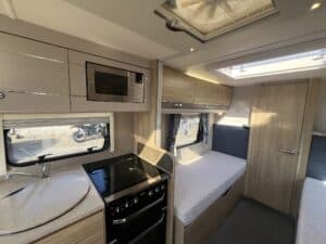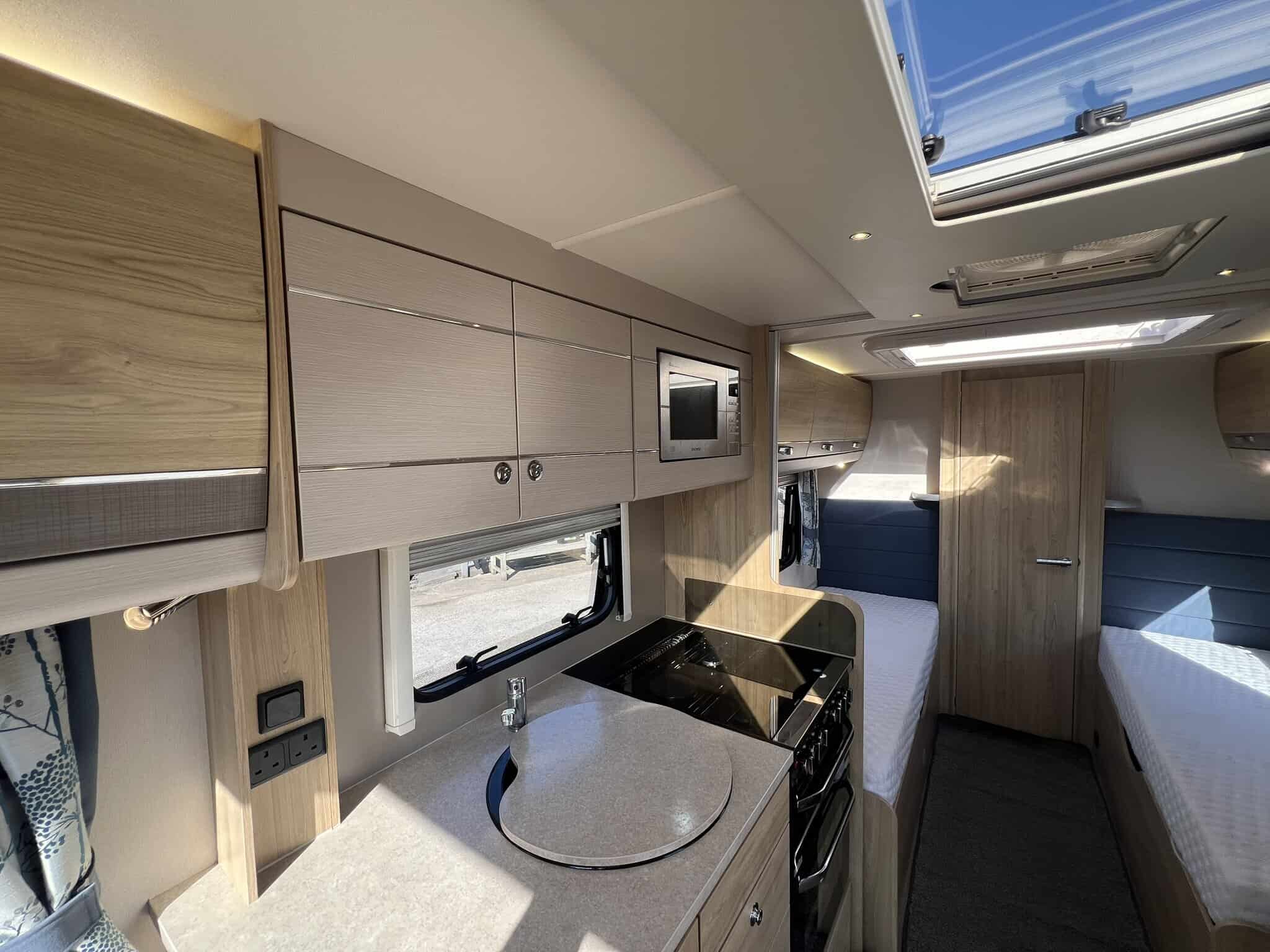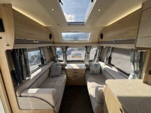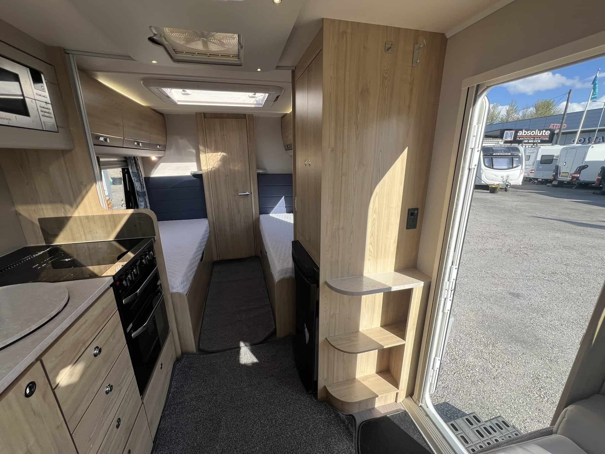 - Layout: Four-berth with twin fixed rear beds, a practical layout for couples.