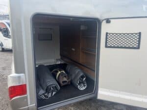 around 1500kg. This motorhome has an exceptionally large rear garage, able to