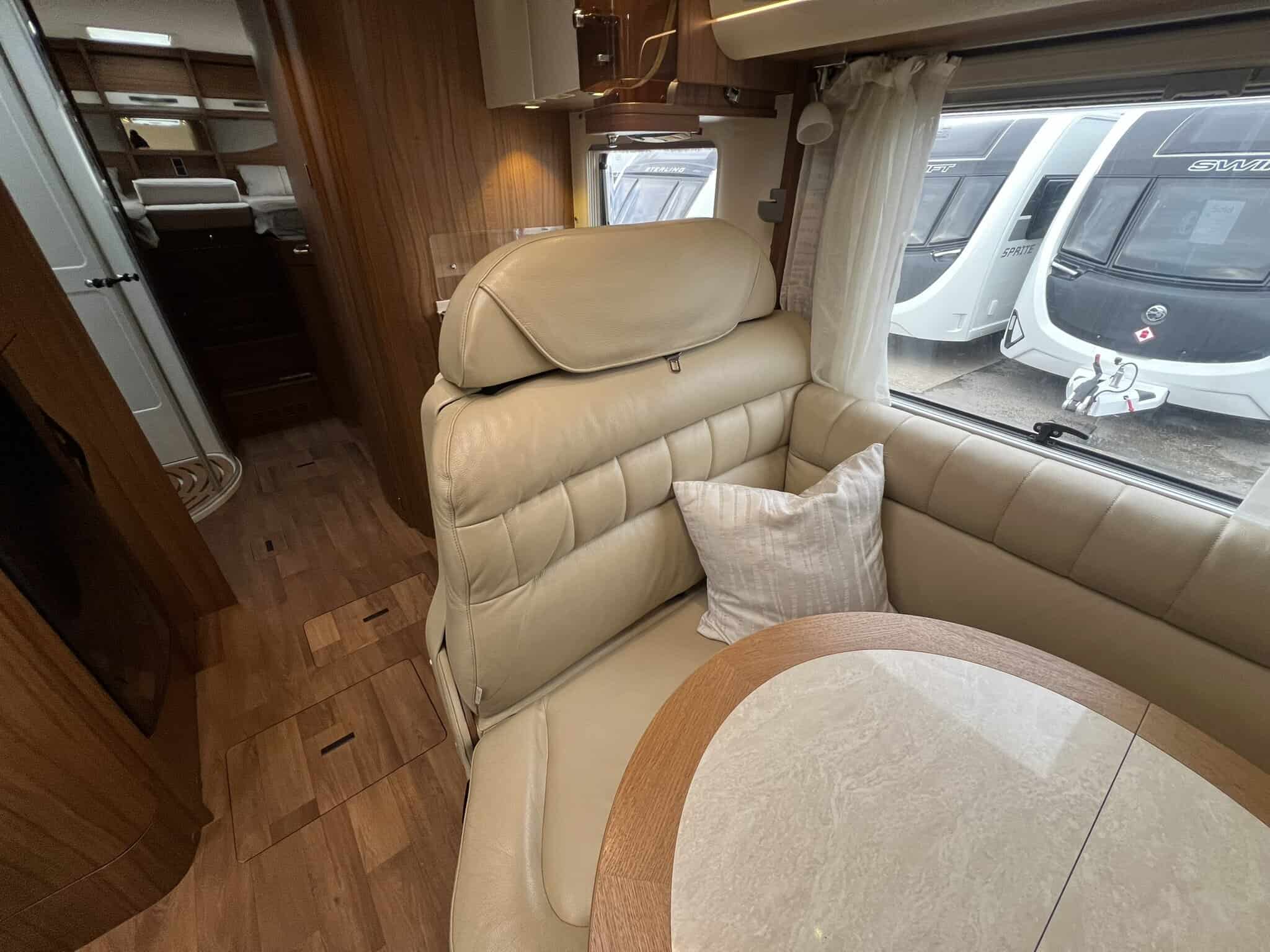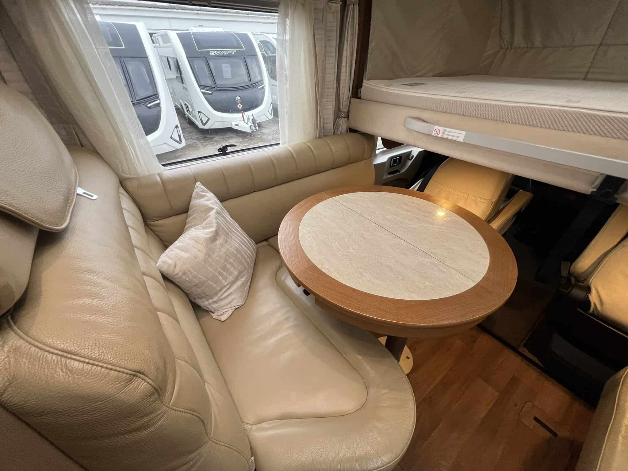 Lounge/dining area is leather throughout. The two rear travelling seats form part of a