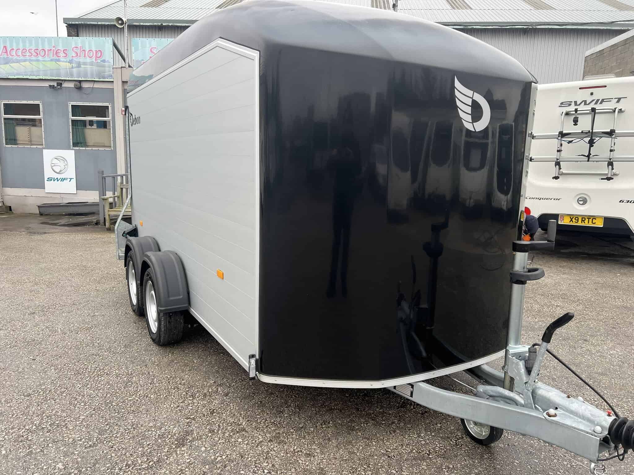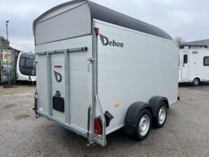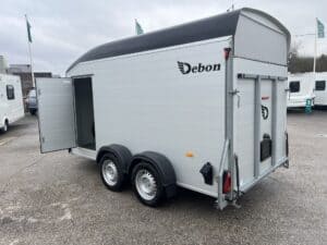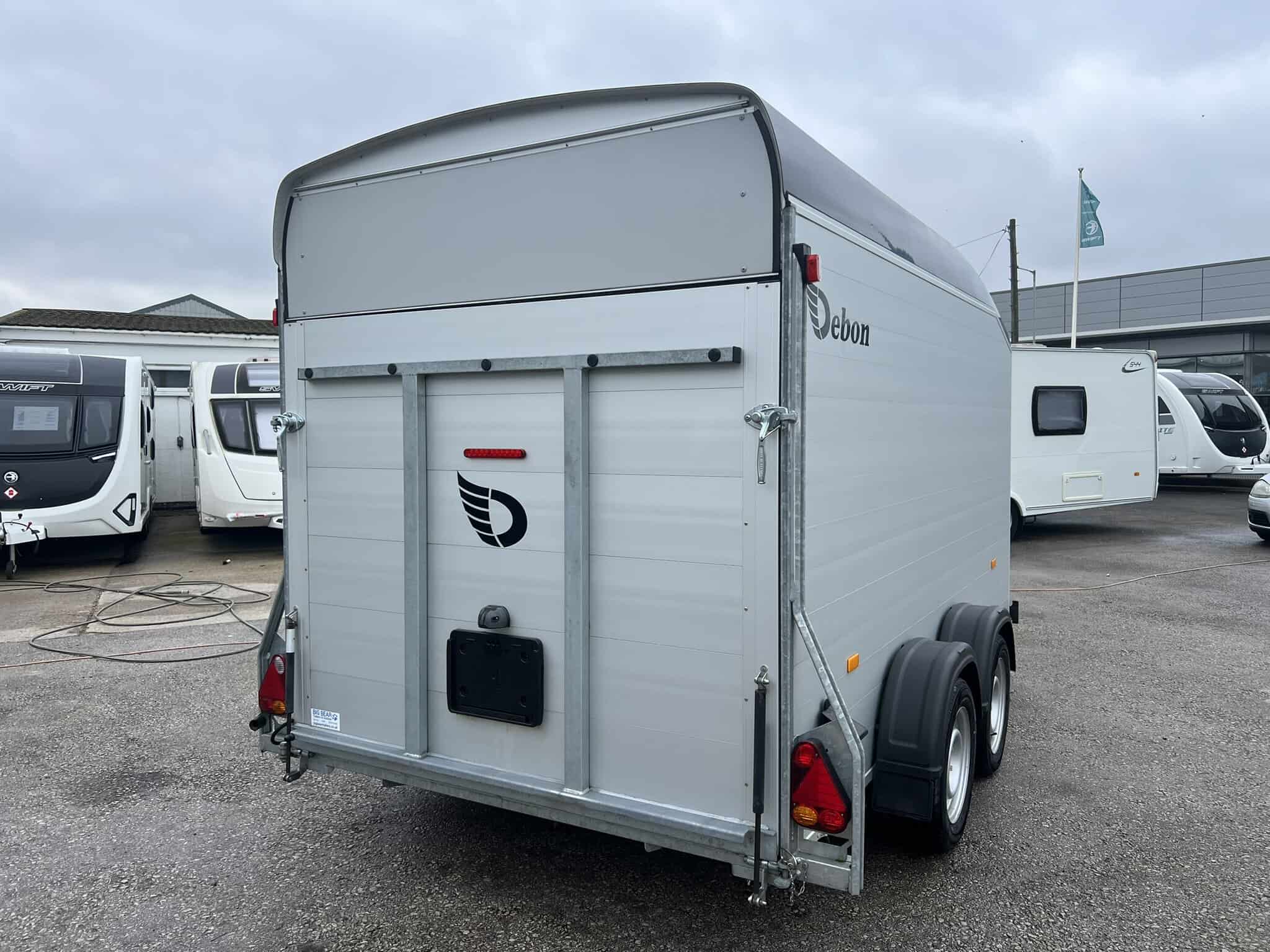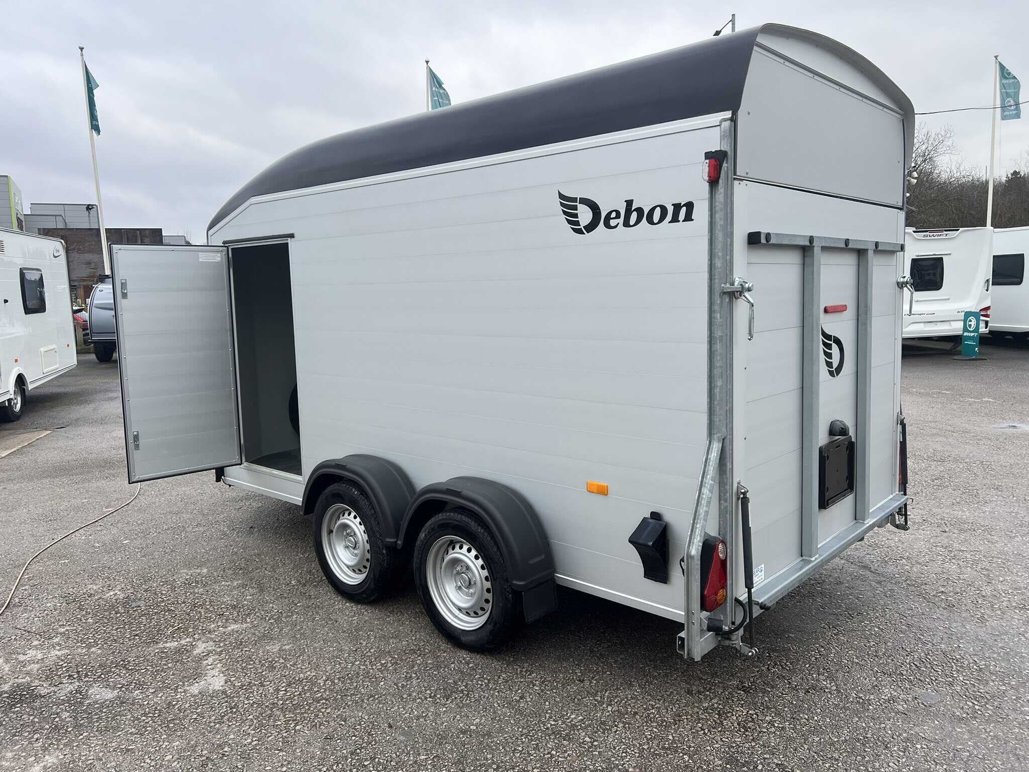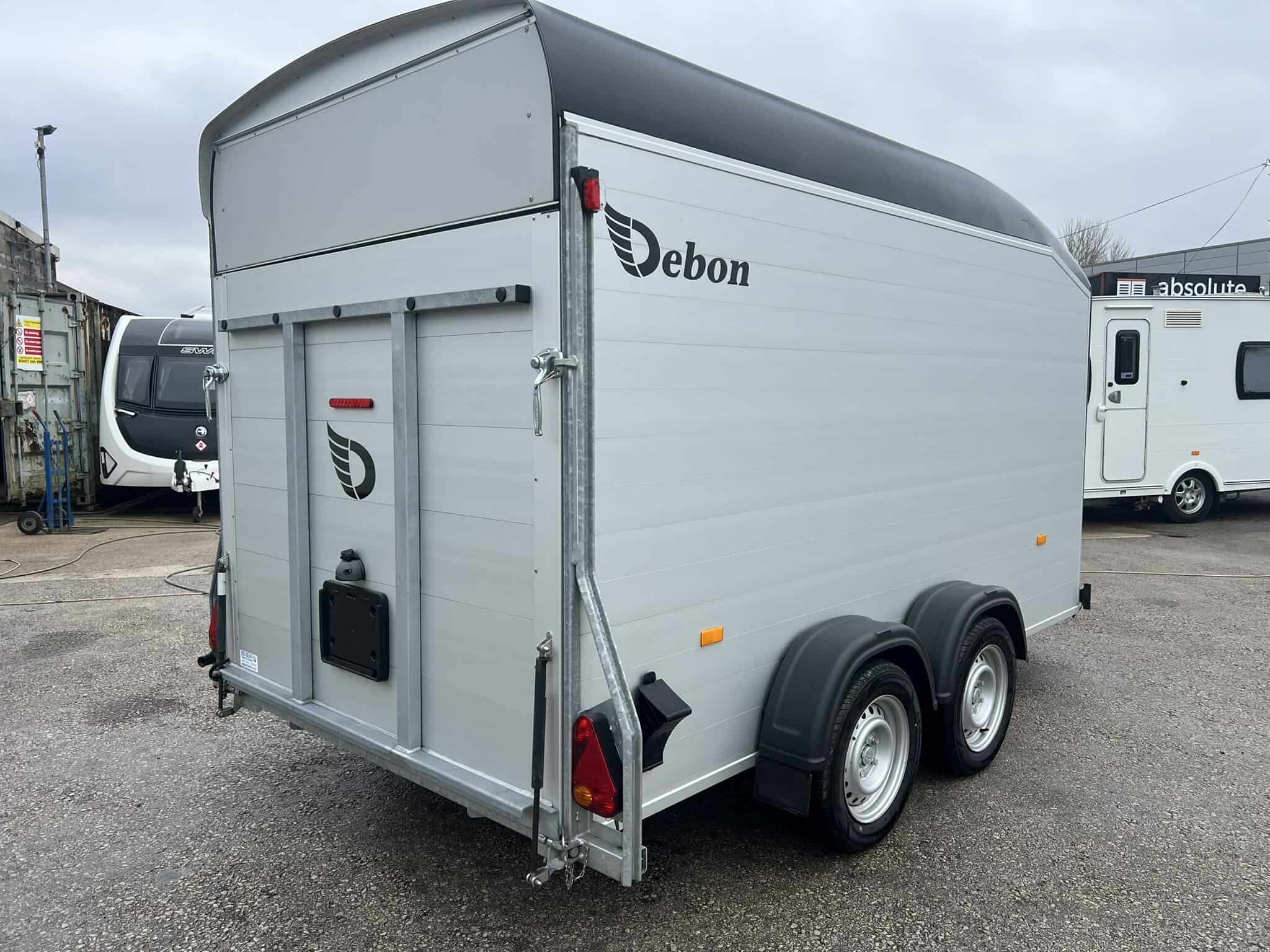 - All the Debon box van trailers come with the innovative 2-in-1 combination rear loading ramp/barn door which drops down as a loading ramp and opens out like a barn door. This integral feature provides a wider opening area making loading and unloading of all types of cargo easier than ever. Key advantages of the barn door system include: + Increased loading space + Improved accessibility + Enhanced securit.