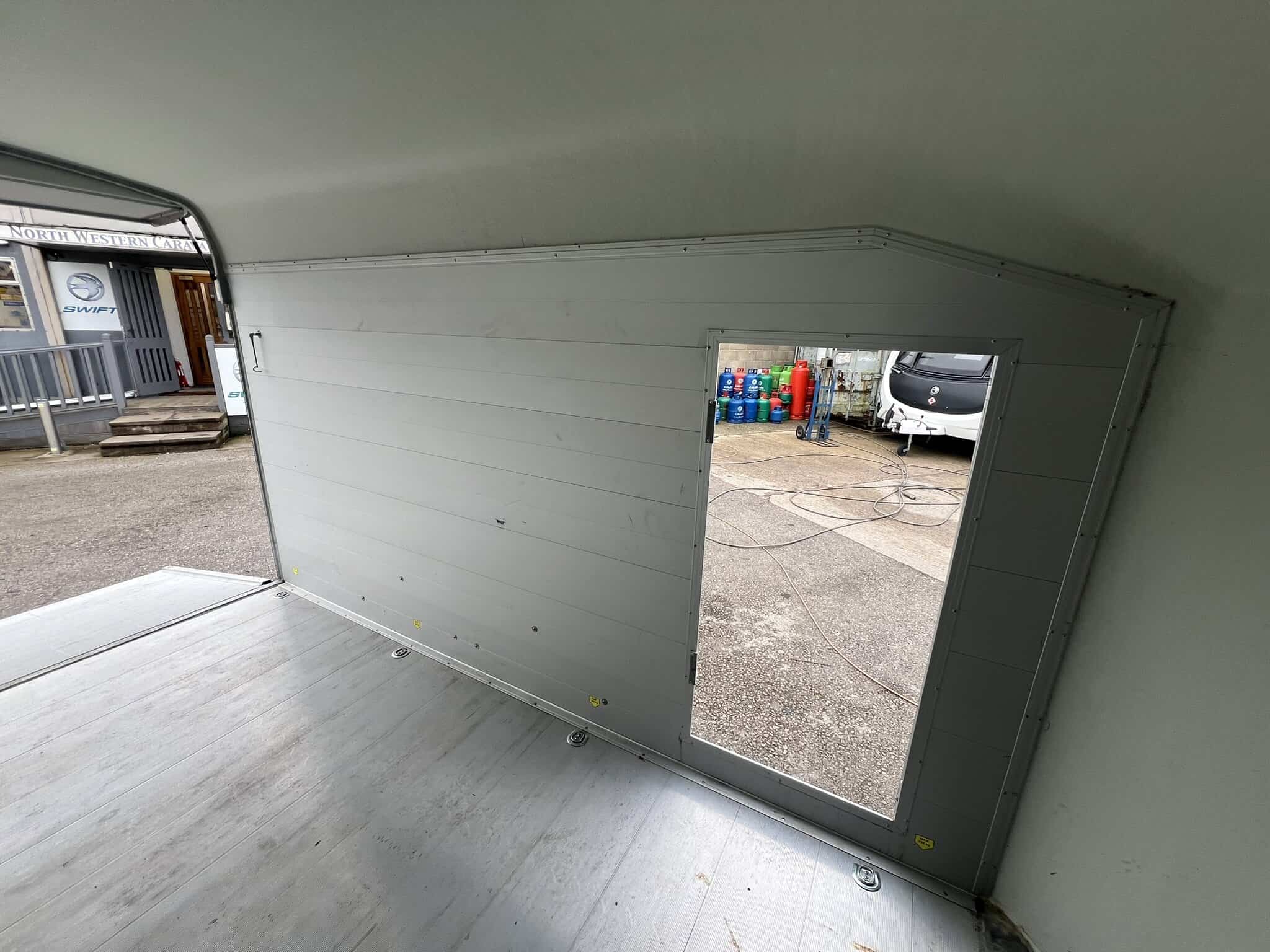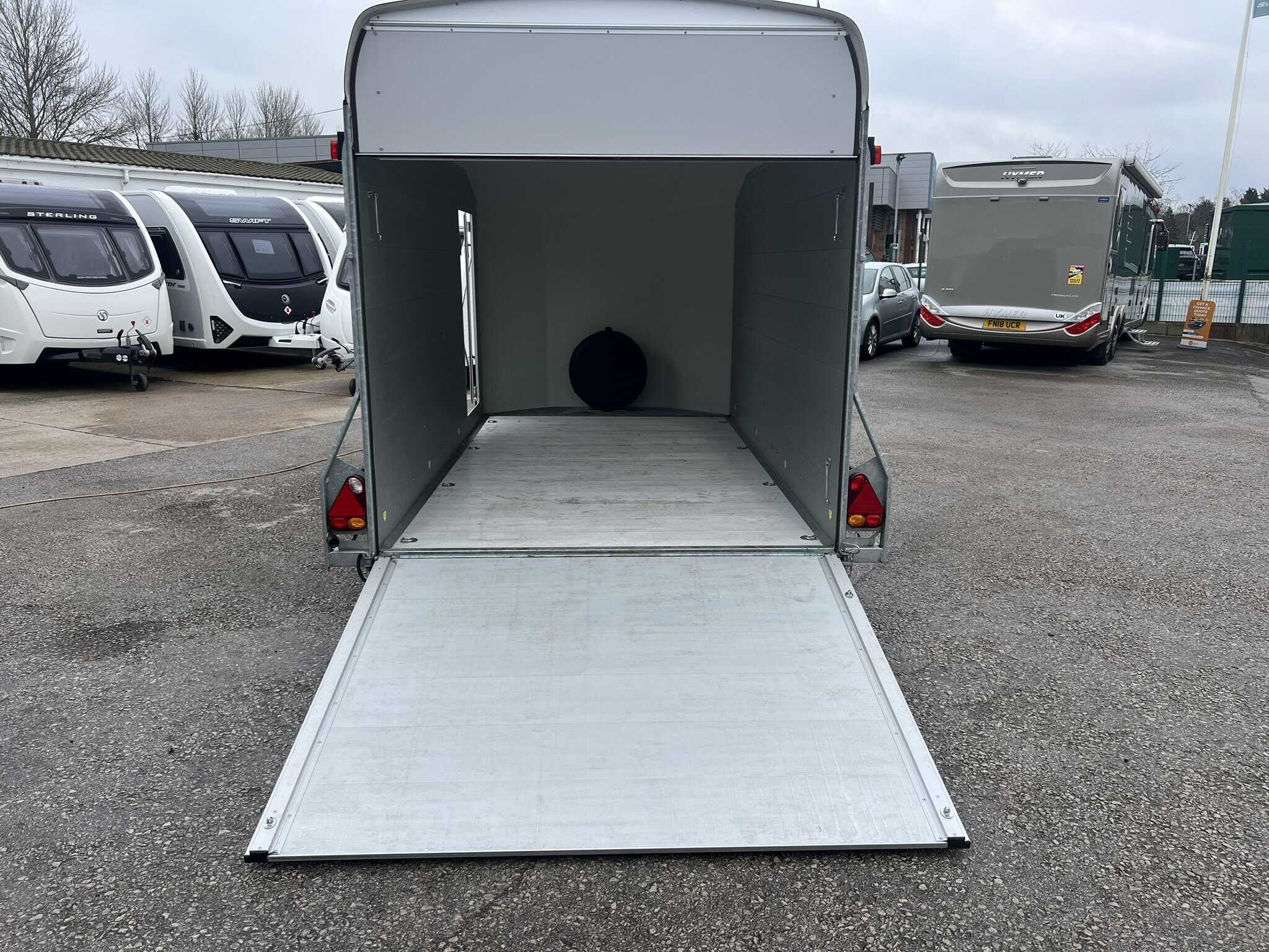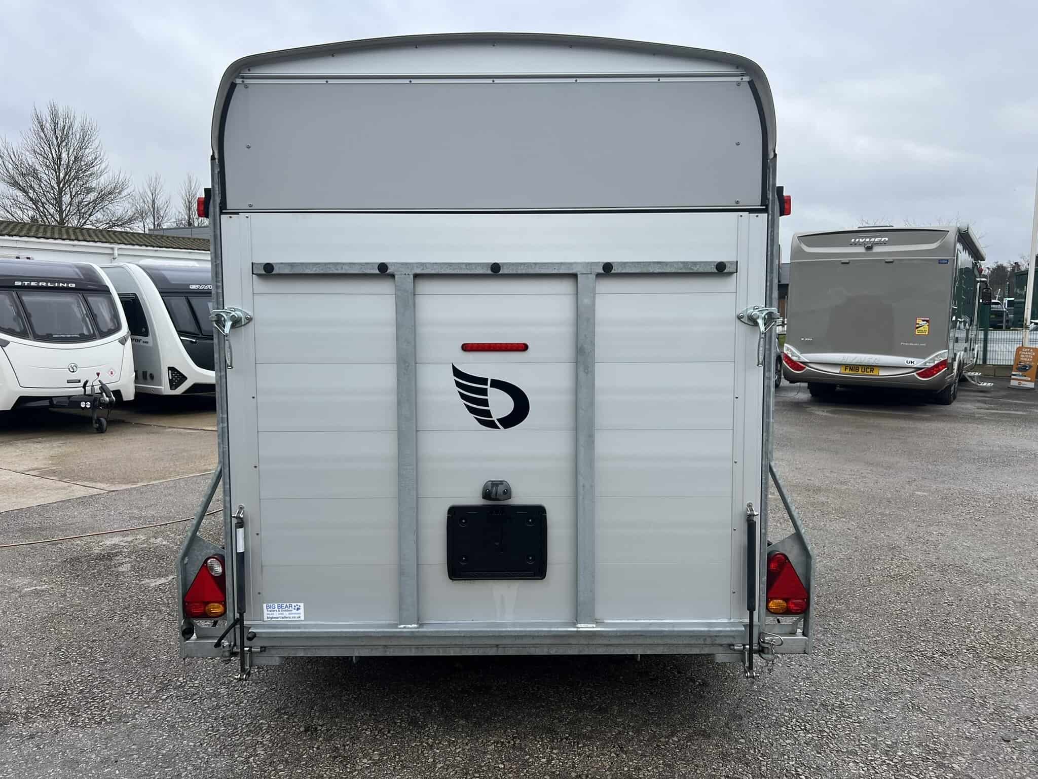 - 2-in-1 combination rear loading ramp/barn door – drops down as a loading ramp and opens out as a hinging barn door