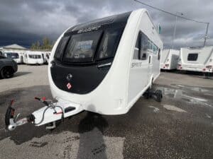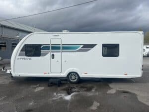 Towards the end of the previous decade, Swift took the Sprite brand up a notch or two. I think you can really see the evidence of the make of caravan‘s efforts on the outside here. The three windows at the front and the contrasting charcoal-coloured gas locker below don’t look like an entry-level caravan. Nor do the chrome grab handles.