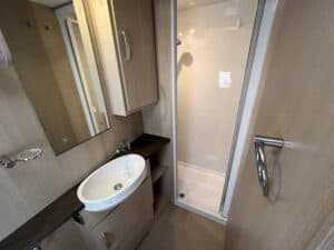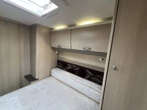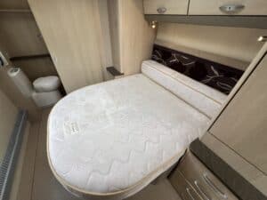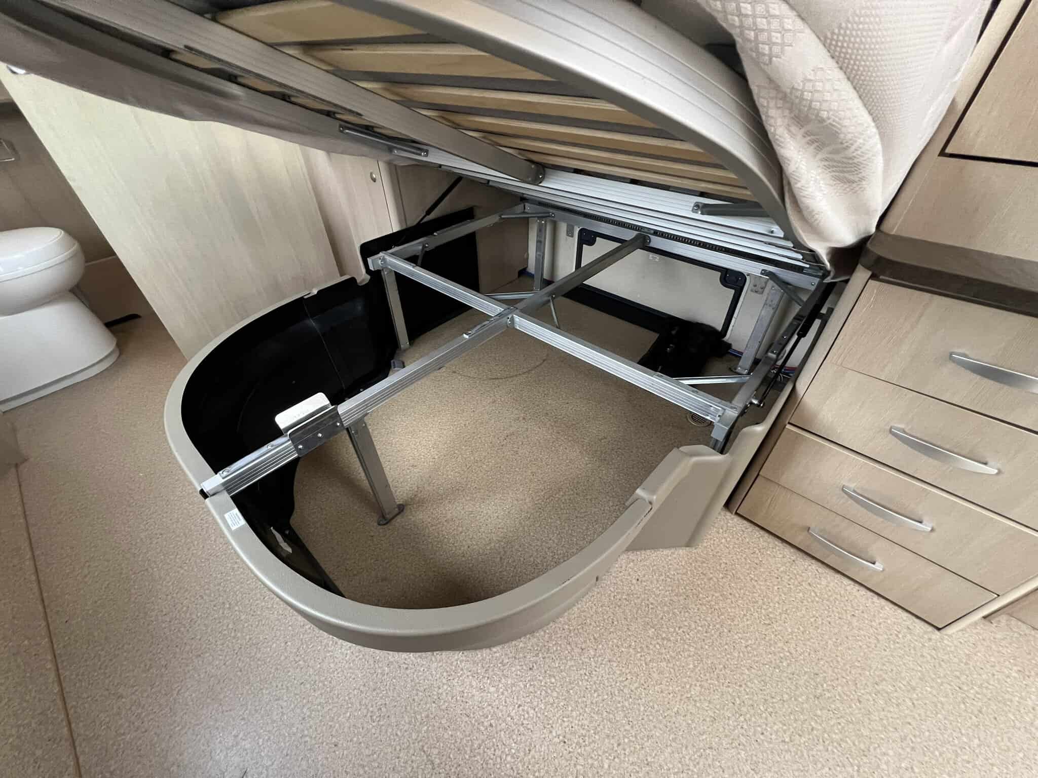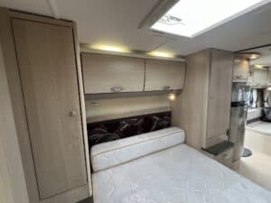 The retracting transverse bed concept is utterly brilliant. In day mode the bed is about 15cm shorter than at night. That creates extra corridor space to the shower room.