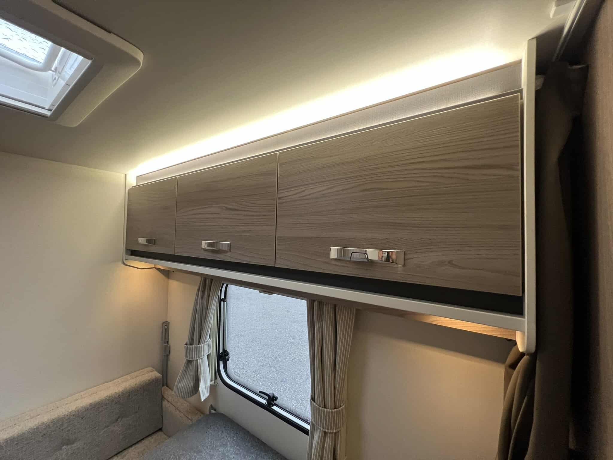 14. User-friendly 12V control panel for battery, lighting, and water pump control 15. LED lighting throughout with over-locker lights, lounge downlights, and front USB points for better connectivity