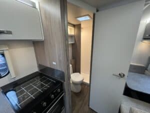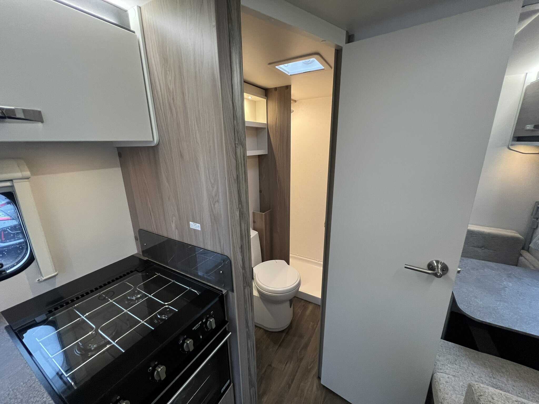 10. Thetford oven/grill with three-burner gas hob. Hob features a glass lid with auto gas shut-off functionality