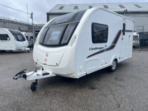 The Swift Challenger SE 480 is based on an Al-Ko chassis, with an AKS 3004 stabiliser and the ATC trailer stability system fitted as standard. The button-free handbrake is easy to apply and release, and the heavy-duty steadies are readily accessible.