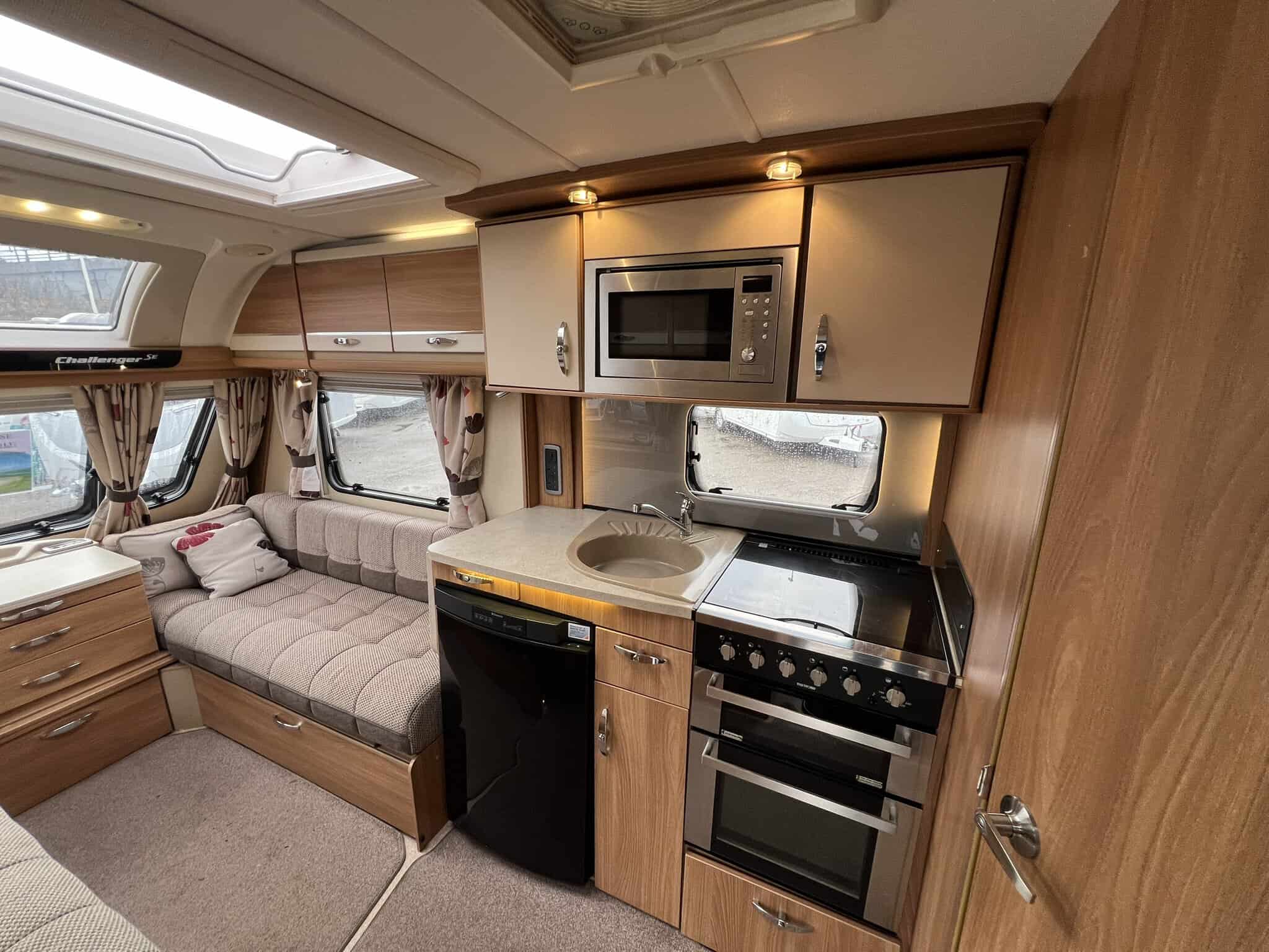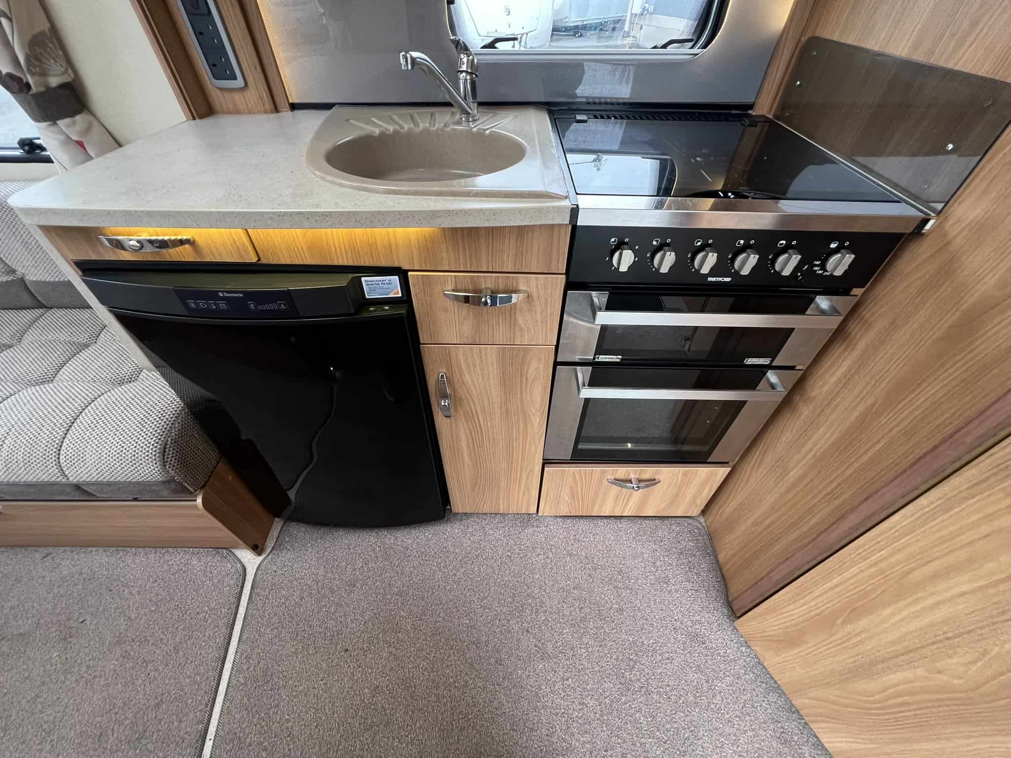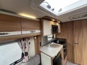 It’s the kitchen area that bears the brunt of the 34cm reduction in internal length compared with last season’s model: there’s less fixed food preparation space, although a hinged extension has been introduced as a space-saving measure.