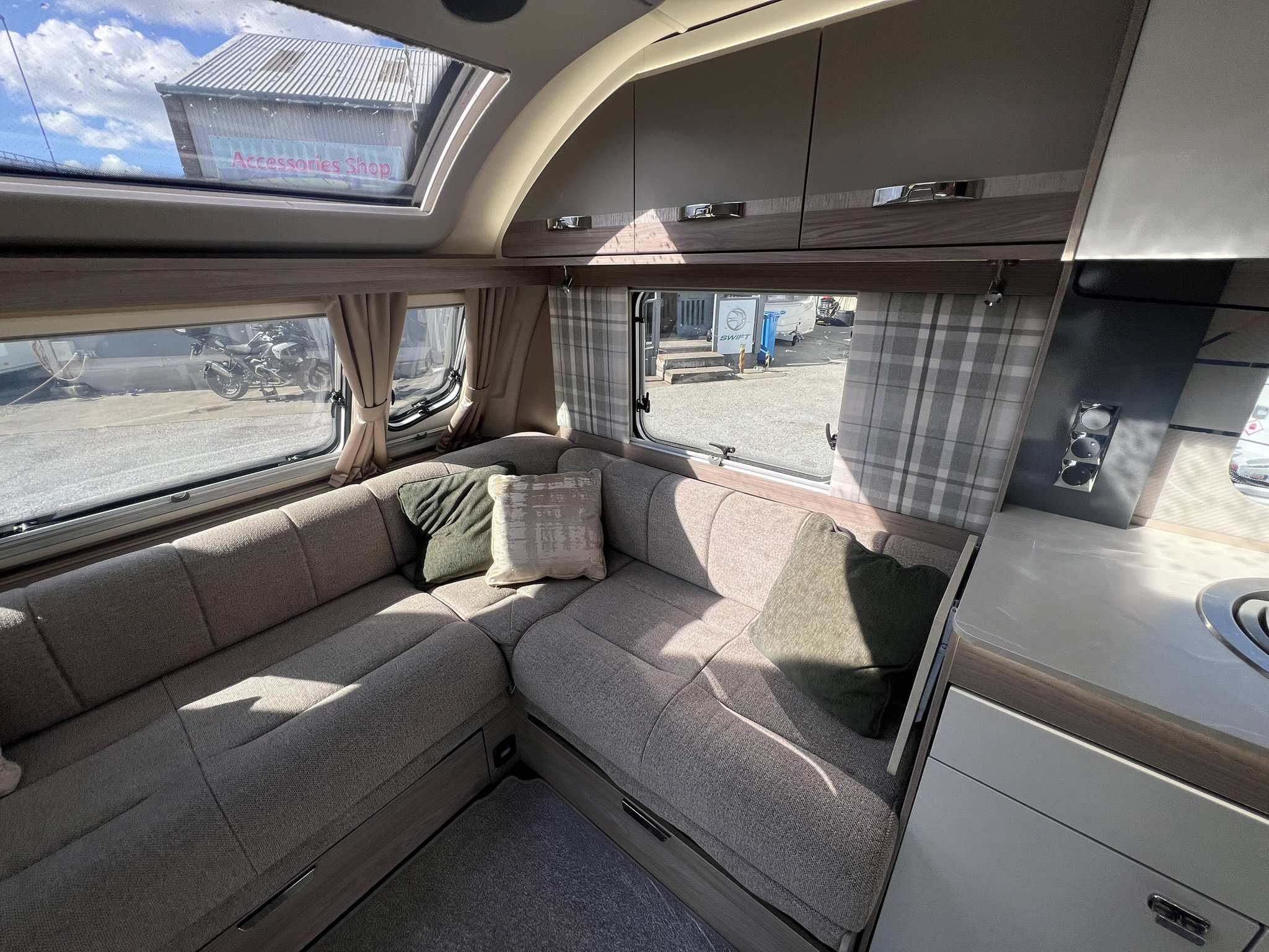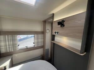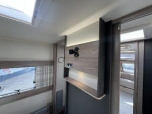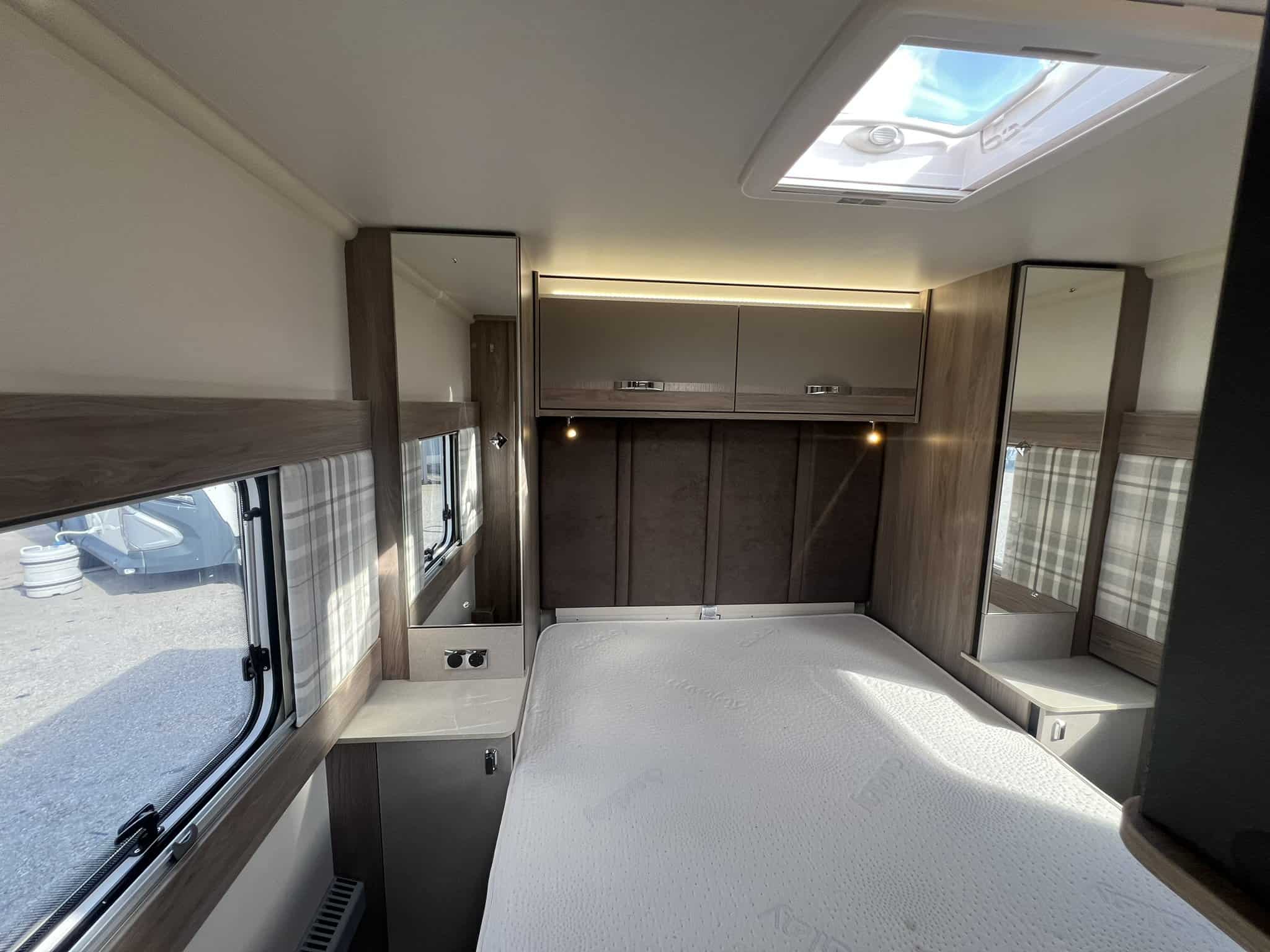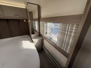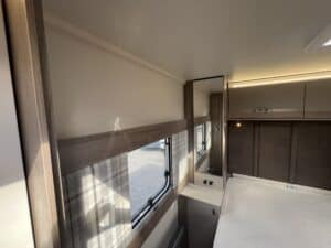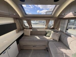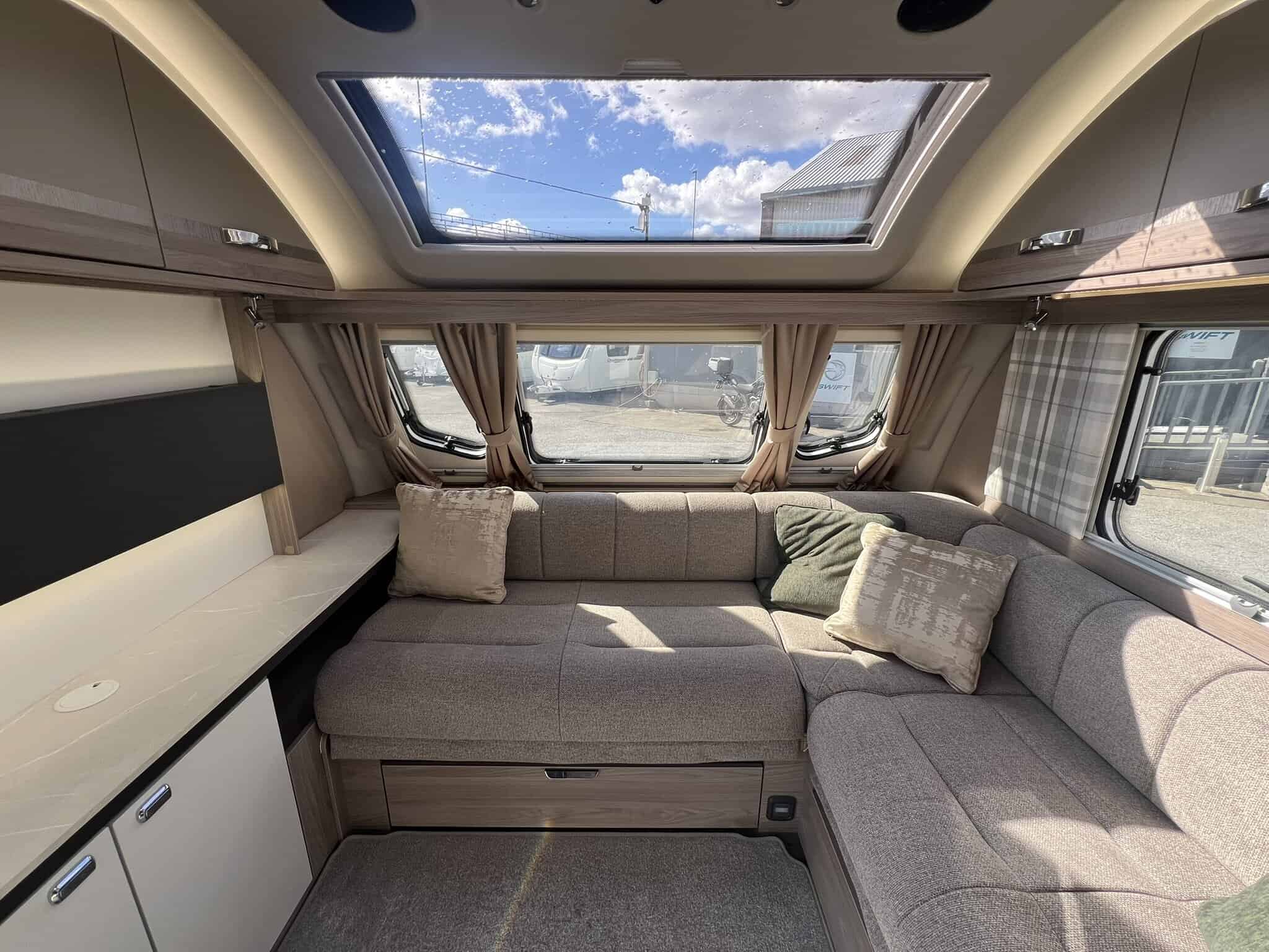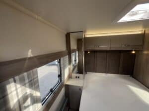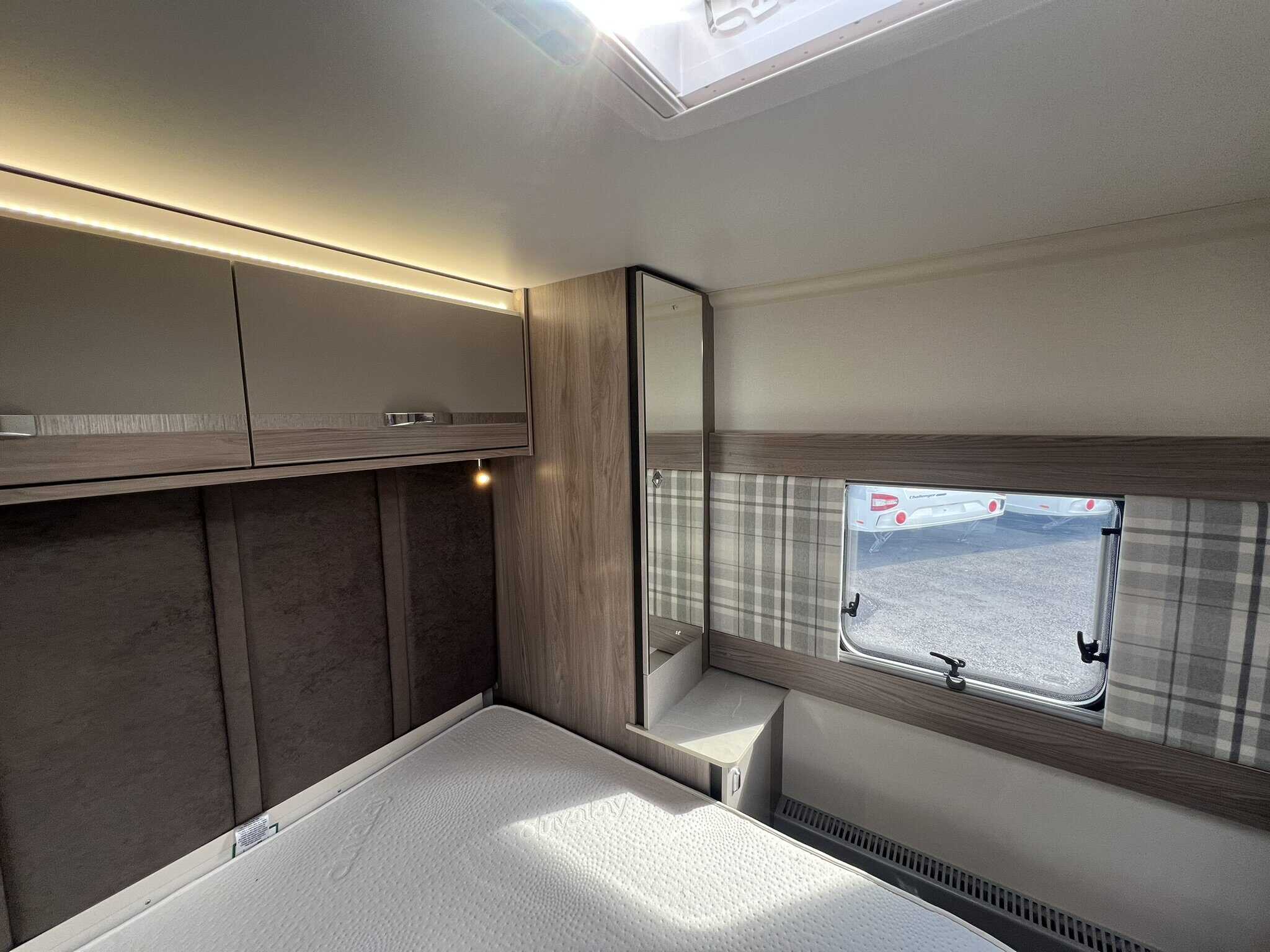 Furnished with a new lighter wood grain for 2023, the Challenger Grande delivers a welcoming and spacious interior. The extra width allows for a wider opening central window and a larger bed make-up in the lounge, which makes all the difference when it comes to overnight comfort.