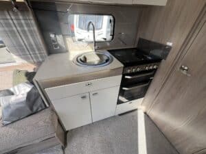 The 560L is a four-berth, single axle model. It has a versatile front lounge that can convert into a comfortable double or two singles to suit your preference. The lounge leads onto the cross-caravan kitchen area, with the washroom behind it. The bedroom is to the rear of the van, equipped with ample storage and fixed island bed.