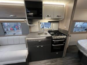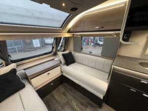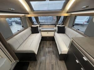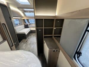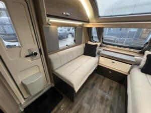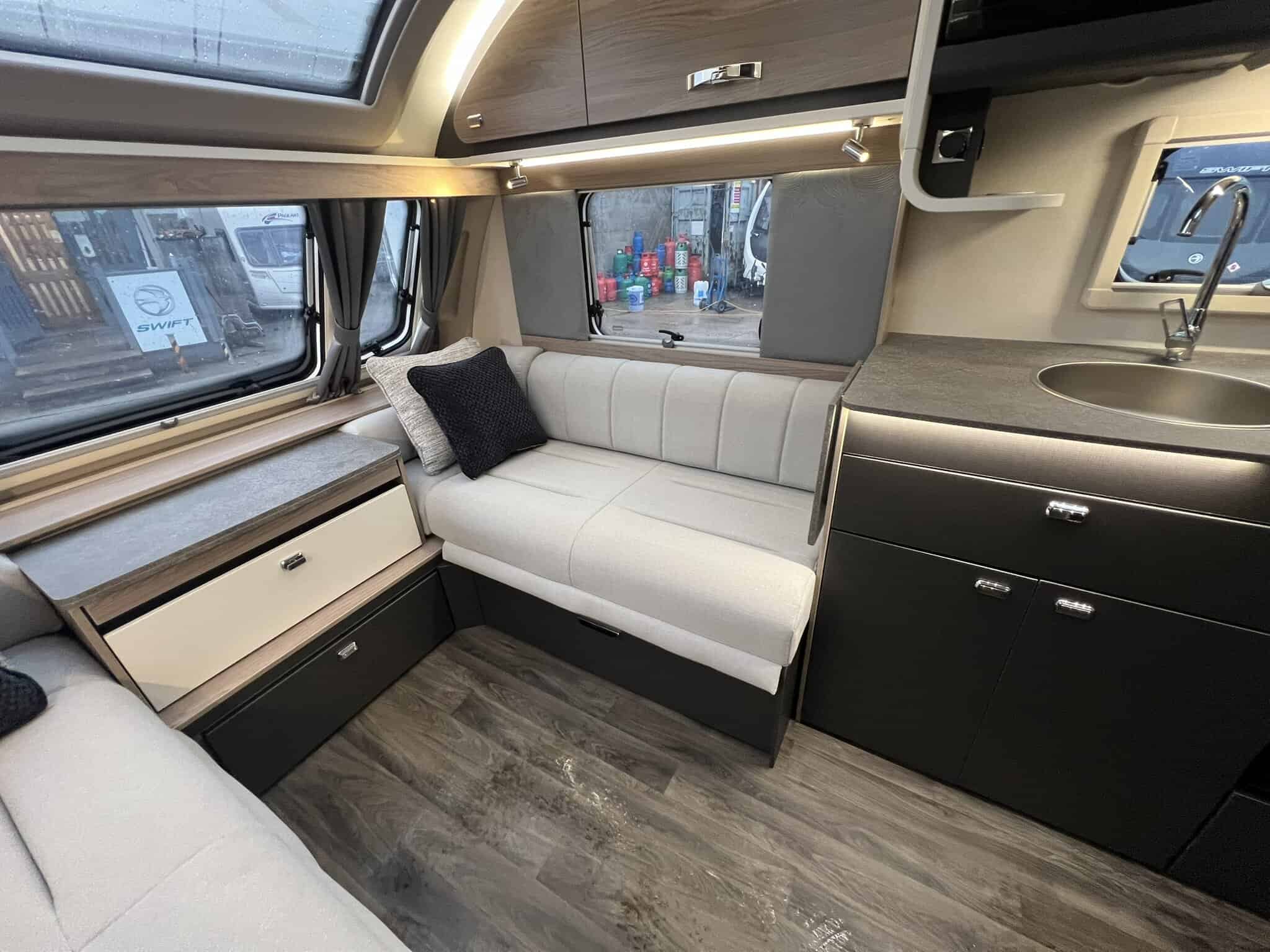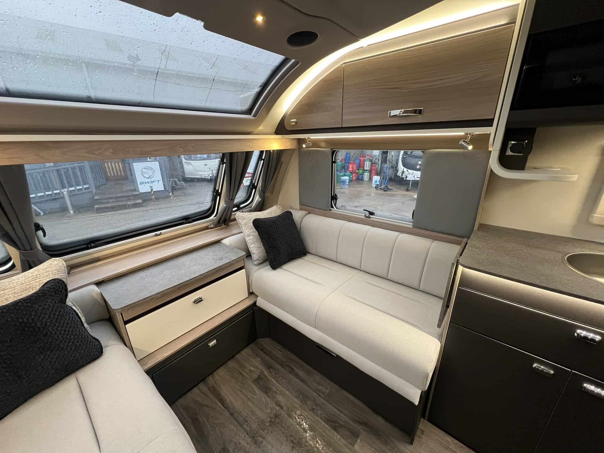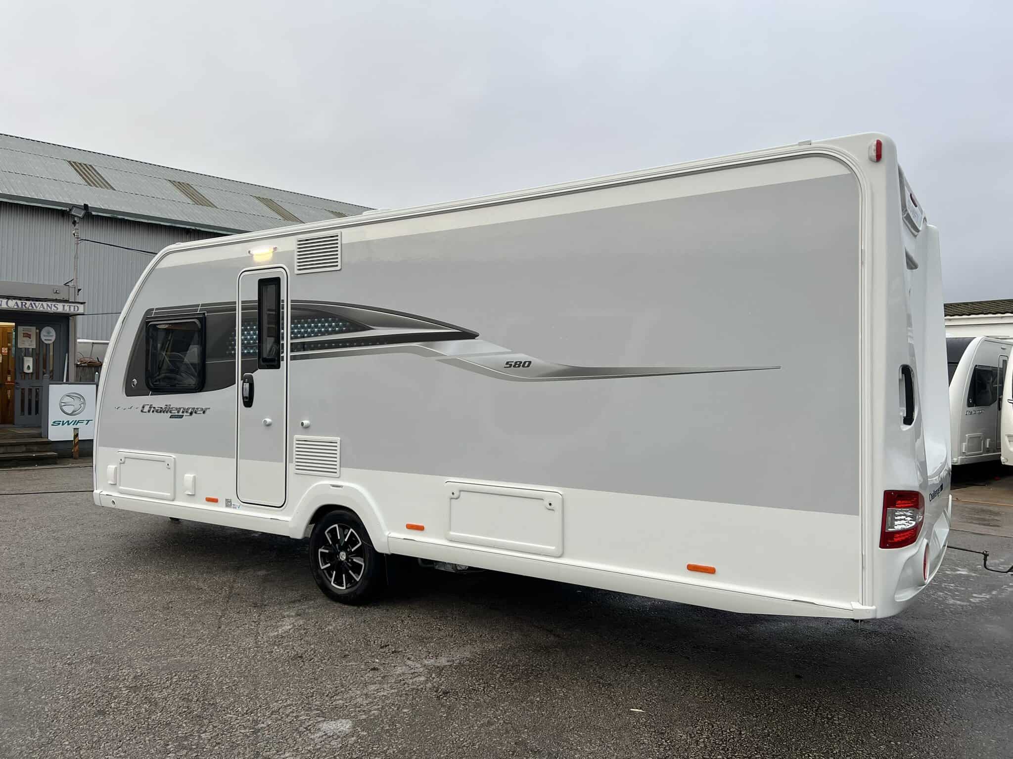 Challenger Grande excels in delivering a welcoming and spacious caravan interior. The extra width allows for a wider opening central window, a larger front bed make-up and exterior access lockers provide convenient storage solutions for all your travel essentials. Every aspect is designed to give you more room to relax and enjoy your time on the road. Swift Challenger 580 Grande 2026.