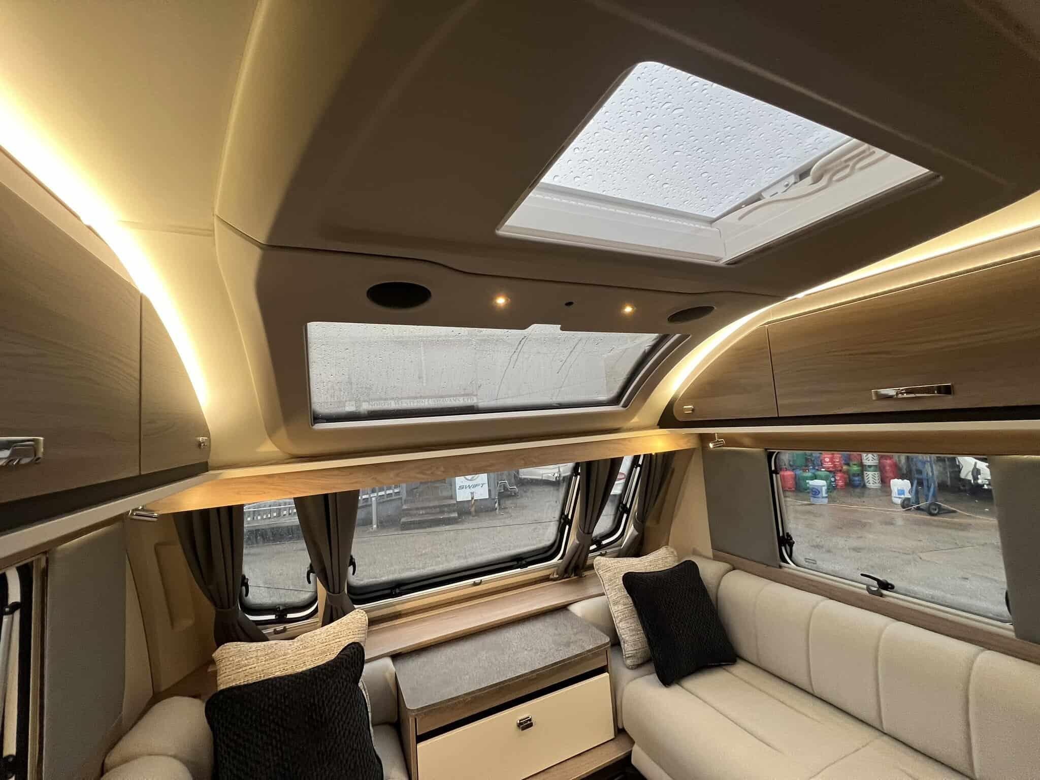 - 04. NEW Dometic panoramic front sunroof incorporating fully integrated curved blind system, recessed lighting and speakers (except 390)
