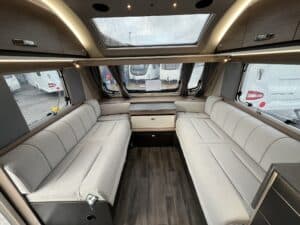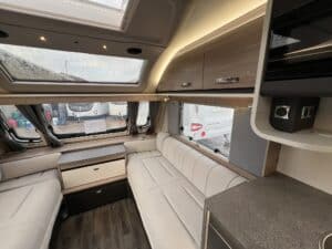 Challenger Grande excels in delivering a welcoming and spacious caravan interior. The extra width allows for a wider opening central window, a larger front bed make-up and exterior access lockers provide convenient storage solutions for all your travel essentials. Every aspect is designed to give you more room to relax and enjoy your time on the road. Swift Challenger 650 Grande 2026.