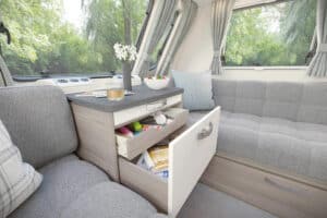 Enjoying all the features of Sprite, but with even more room to relax and unwind. The extra space in the 8ft-wide range allows for a wider opening central window and front chest, an airy dining area and larger sleeping spaces.