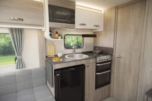 Retaining Sprite’s refreshed light and airy interior for this 2024 season, it continues to present quality fixtures and hardwearing materials that are synonymous with the Sprite range. Plus, with low energy LED lighting throughout, fast heat up Truma Combi-Boiler and a well equipped kitchen and washroom, it’s an ideal family caravan.